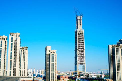 天津117大厦位于天津滨海高新区,系一幢集甲级办公、酒店、旅游观光和精品商业于一体的特大型超高层摩天大楼。大厦于2008年9月10日开工建设,总建筑面积84.7万平米,创摩天大楼建筑面积世界之最。建设过程中使用了国内房建领域最长桩基,达120米。