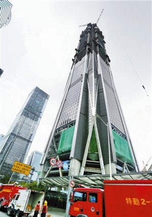 核心提示: 深圳在建的最高楼平安金融中心突冒浓烟,大批工人窗边挥衣呼救,国内最高的云梯车及时赶到,展开空中救援。昨日上午,一场跨