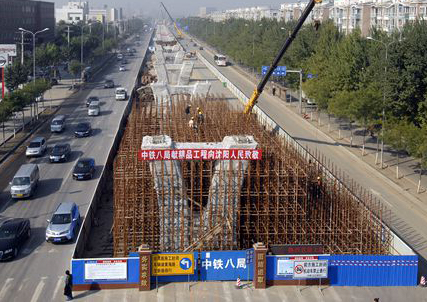 在沈阳市迎宾路高架桥施工一线,超过千名工人正在作业,桩基、承台、墩柱施工接近尾声,箱梁模板搭设全面展开,放眼望去,桥梁已经初具形象。中铁八局迎宾路高架桥项目经理谢建成告诉记者,沈阳市迎宾路高架桥工程,现浇梁完成5联,钢箱梁完成3跨,预计2014年10月底前将完成桥梁下部基础工程,具备通车条件,2015年10月份完成全部工程。