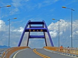 据了解,新城大桥在主桥设计时,为了与主桥12跨的设计相呼应,在桥面部分对应增加了12处拱形钢桁架,这使得一座普通的连续箱梁式桥,看上去具有了拱形桥的立体感。同时,设计方在主桥两侧桥头部分设计了高9.9米,宽3米的四个欧式钟塔造型的桥头堡,使得整个大桥更具韵味。
