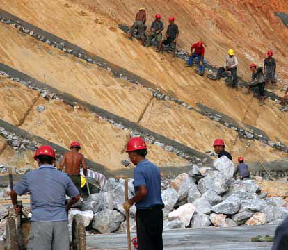 10月8日,湖南省益娄高速公路沿线在施工。沿线工地全体建设者放弃节假日休息,抓紧施工,
