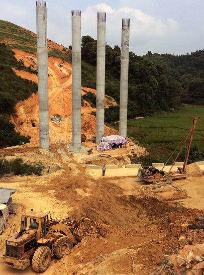 长岗镇欧垌二桥目前已完成32根桩基、18根桩基灌注桩、4根系梁