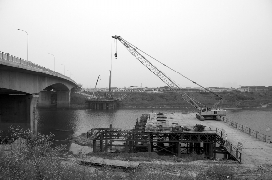 核心提示:10月12日,长沙磁浮工程浏阳河大桥正在紧张施工。目前,水下桩基建设已基本完成