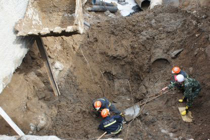 10月11日15时44分,记者接到读者打来的热线电话称:“赛罕区新希望街东口热力管网改造工地发生坍塌事故,一名工人在施工挖开的基坑内失踪,消防队员已经赶到现场开始搜救。”