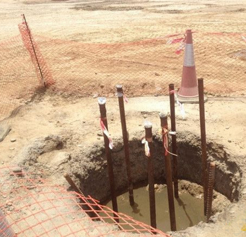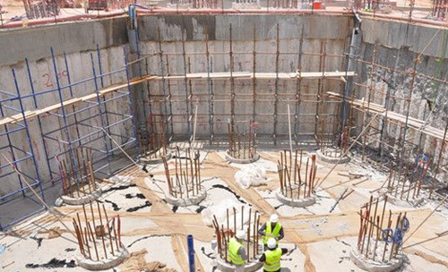该施工包括将72根直径1.5米的桩打入110米的地下,将154根直径1.5米的桩打入49米和89米的地下,将44根直径1.8米的桩打入50米的地下。总计270根桩。