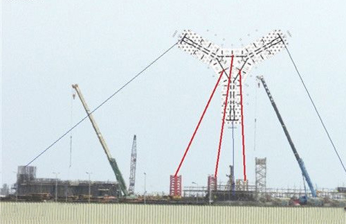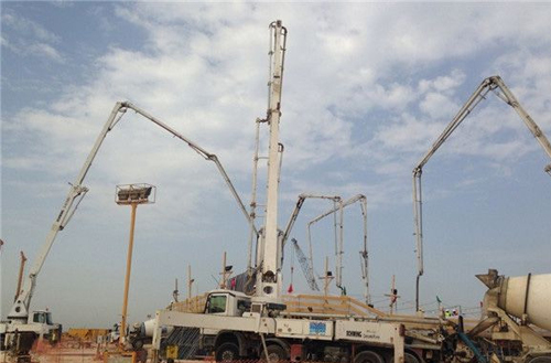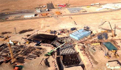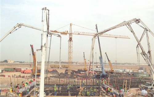 用一根直径15厘米左右的高压细管把湿水泥‘喷’到高塔上,并且只能在黑夜中运送,否则白昼的沙漠高温会让水泥在管子里干固凝结。