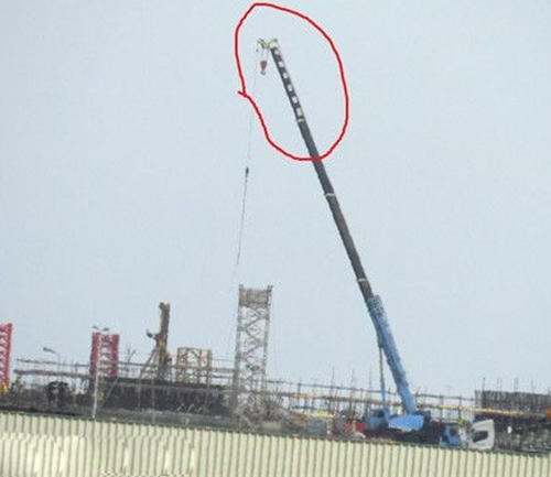 局部放大,发现吊车确实是三一重工的。。。赫然六个大汉字,但是看不清到底是什么字。。。。