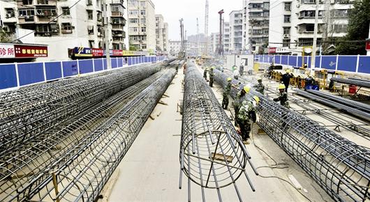 核心提示:工人们在瑞安街工地上制作桩基钢筋笼   昨日,记者探访地铁7号线一期施工现场了解,南湖片区首个地铁站瑞安街站进入车站主体