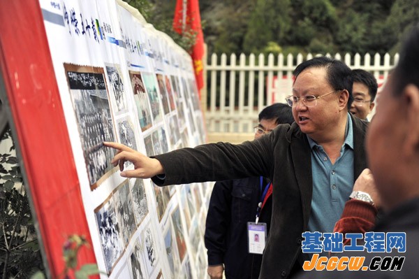 10月16日,中铁十局宝兰客运专线项目经理王立新正为参观者介绍企业文化