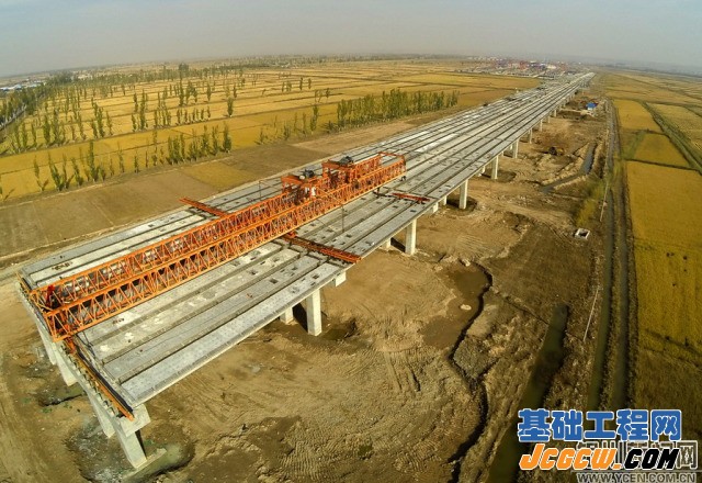 北京路延伸工程河西段正在架设盖梁