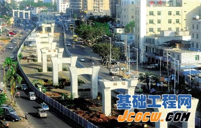 10月23日,施工中的省重点项目工程海口海秀快速路工地。两次台风过后,海秀快速路施工单位克服困难,加快施工进度,目前第二标段完成桩基700多个,超过全部桩基数量的一半。据悉,海秀快速路自2012年年底开工以来,至今围挡施工8.4公里,包括创业路至海垦路段7.4公里,长彤路以西1公里。