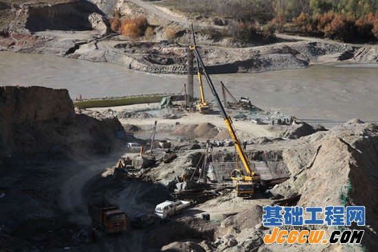 尕玛羊曲黄河特大桥正在进行桩基施工