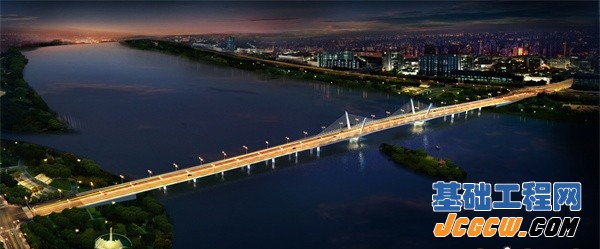 月亮岛过河通道(赤壁路桥)为六安市中心城区2014年重点工程项目,赤壁路桥为双塔双索面矮塔斜拉桥