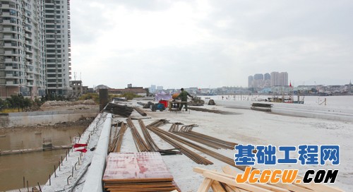 滨江大道一期工程正在进行老桥桩基后续的钢筋制作