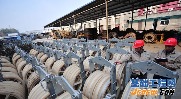 国网天津市电力公司送变电公司安全员检查线路放线滑车