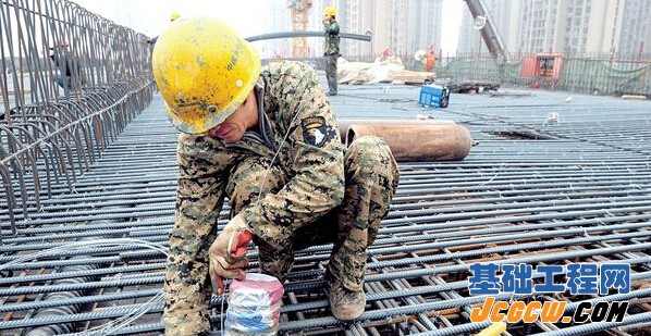 上午10时,伴随着机器的轰鸣声,在陇海高架东风南路站建设工地,工人们正在高架桥箱梁上紧张地绑扎钢筋。“我们一天要绑扎4000多个扎丝,不过大家已经习惯了。”37岁钢筋工韩胜平说,他来自山东单县,为了施工已经两年没有回去过年了。