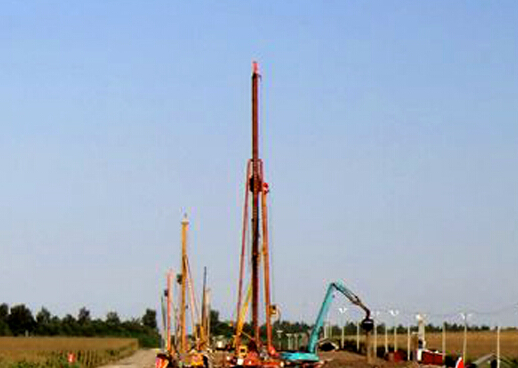 京沈高铁项目施工管段全长12.92km,包括6.2km路基工程,其中有3.1km为软基处理,设计采用CFG桩进行加固,总量为38043根、420953延米;由于处于主架方向,该段软基处理是整个标段内控制工期工程。