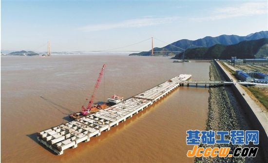 11月11日,舟山金塘岛西堠工业集聚区外的海边,一座2000吨级的物流码头初现雄姿。据了解,该码头长237米、宽16米,码头平台采用高桩梁板式结构,桩基由184根直径0.8米的PHC-B型管桩组成,主体工程将在年底完工。
