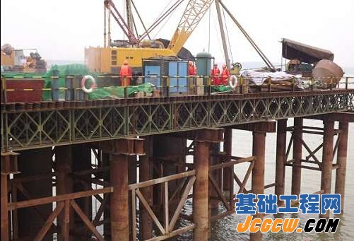目前,赣江属于枯水期,赣江特大桥正加紧水下桩基施工。