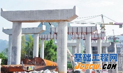 崇左至靖西高速公路跨越左江干流唯一的一座大桥——左江特大桥,位于江州区太平街道,大桥全长456米,采用双向四车道,设计时速为100km/h,桥面宽为26米。大桥过渡墩及引桥的桥墩均采用双柱墩配桩基础,桥台采用筋板桥台配桩基础,目前大桥的桥墩已全部建好。