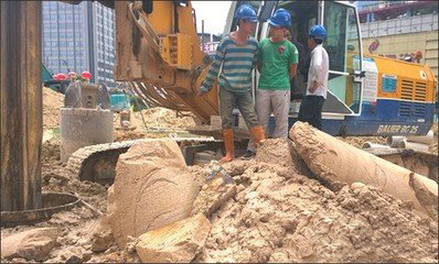 在2014年上半年,莲花路口站在使用了这一台BG25旋挖钻机之后,成为了厦门岛内施工进度最快的站点。上图为宝峨BG25在该工地钻出的斜岩。