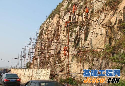 为使边坡治理方案兼顾安全可靠、绿色环保,玉环县公路部门结合公路交通状况,因地制宜,按照“避让为主,治理为辅”的设计思路,尽量保护和保持山体现有生态环境,并注意与原地形、环境保持协调。工程计划清除零星分布的危岩体,设置截水沟,并做好坡顶放坡,减少危岩坡度,挂上主动防护网,在危岩带打入9米长的预应力锚杆加固,防范公路边坡的崩塌隐患。