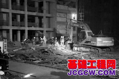 目前,5名死者的身份已经确认,事故的搜救工作也已经结束。昨天记者赶到事发现场的时候,仍然可以看到有十几辆消防车和救护车停在事发地点,5台挖掘机正在全力搜救被困工人。有现场围观的群众说,“肯定是地基没打牢,否则盖了一层怎么就倒了呢?”