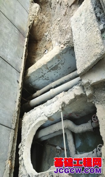 记者在现场看到,3号楼的楼下,一共挖开4个大坑,直径约4米,深为2米,坑内是横七竖八的管道线。据了解,这些坑刚挖开不久,管道也没有维修。不仅是1号楼地基出现塌陷,小区东侧的花园也明显出现地基下沉,而且路面开了一条20厘米的裂缝。