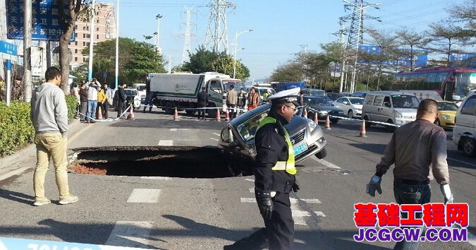 据了解,当天上午,广州天河区科韵路琶洲大桥北段发生地陷,深达6、7米,现场有一辆小车陷入坑中。上午10时左右,小车已经被拉出来,车上人员及时逃离无受伤。下午2时30分,天河区建设和水务局调派的抢险队伍便开始科韵路员村段车行道塌陷原因核查和修复工作。