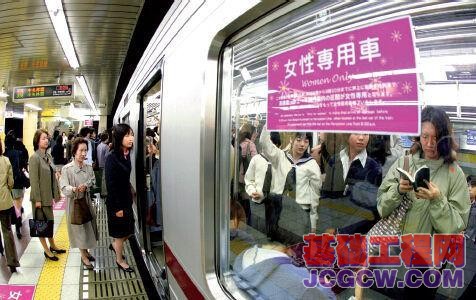 日本东京,为了减少女性搭乘地铁时遭色狼非礼的事件,从2005 年5 月9 日起在早上上班高峰时间开设女性专用车厢。