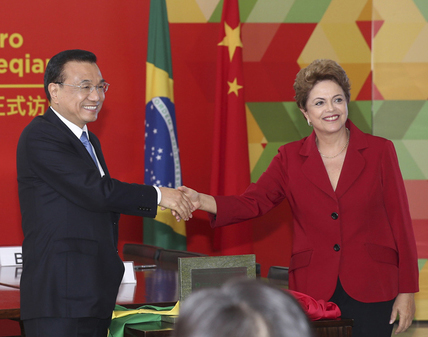 当地时间5月19日上午,中国国务院总理李克强在巴西利亚同巴西总统罗塞夫共同出席中方企业中标建设的美丽山水电站特高压直流输电项目视频奠基仪式。该项目线路全长超过2000公里,自北向南穿越巴西大部分国土,是中国企业在海外中标的首个特高压输电项目。