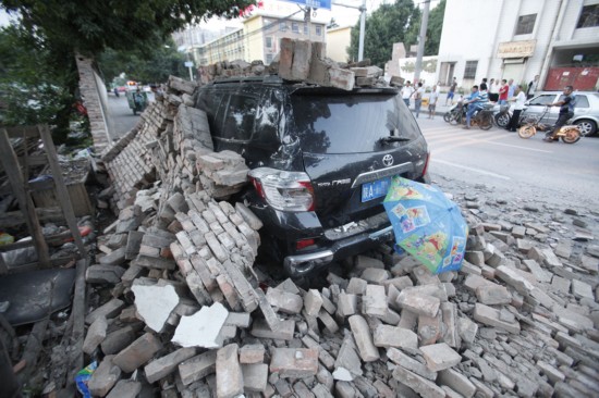 核心提示: 2015年7月2日,西安市幸福路。长度约10米的砖砌围墙齐刷刷的倒向马路,一辆在墙边临停的丰田越野车被砸中,险些伤着刚坐进车
