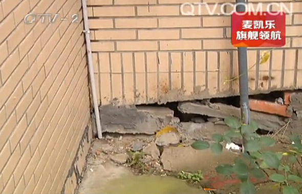 青岛一小区地基松软地面下沉 楼房裂缝大居民心惊