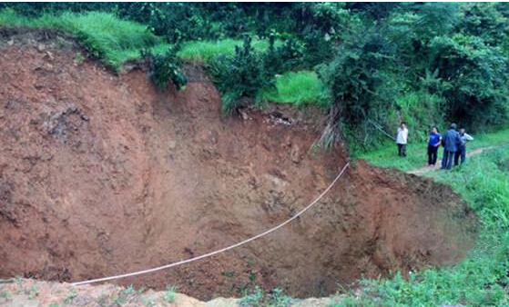 近日,网友“东方”反映,安远县欣山镇教塘村中碛组一半山腰上,突然出现了一个直径约20米、高约15米的“天坑”,地面塌陷的面积超150平方米。安远县矿管局回复称,此次塌陷是由地质变化溶洞发育而引起的,目前已上报当地人民政府,将用大石块填充好。