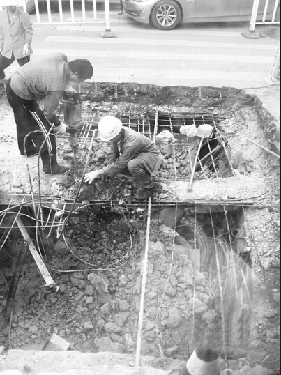 当日上午10时许,记者在该路段看到,北向南方向的人行横道中央,有两处管线井盖,其中一处井盖已经破损,周围路面下沉了近20厘米,东岗交警大队民警正在该路段疏导南北双向车流。据执勤民警介绍,发现路面的情况后,他立即与多家通讯单位取得联系,最终确定是电信公司的电缆井。抢修人员赶到现场后,对该电缆井进行全面勘查,发现井内有部分混凝土已经脱落。