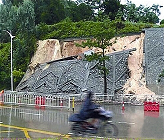 公园边坡塌陷现场