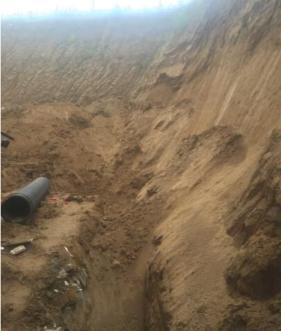 记者来到“哈南之星”9号楼,记者看到,9号楼旁一米处是一面高约4米的土坡,土坡和楼中间有一条深约3米的土沟。据知情人告诉记者,22日中午,此处土坡发生滑坡,当时现场有工人正在沟内施工。记者注意到,在楼盘和土坡中间没有任何围挡,施工环境十分危险。