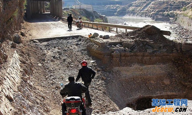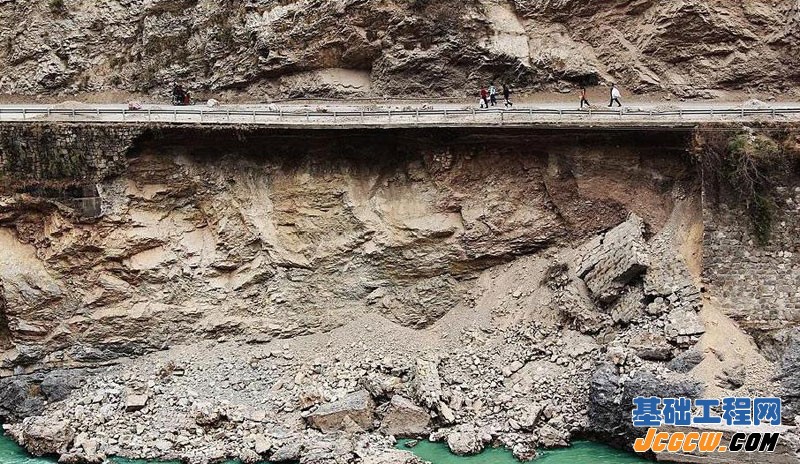 连日来,四川甘洛县境内的省道208线一段约60米长的路基垮塌,造成当地道路运输出现困难。路基垮塌只剩下一层水泥路面悬在半空,20多米高的悬崖下牛日河奔流而过。据悉,该道路是甘洛县前往乐山、雅安、成都等地的通道。该公路修建于上世纪60年代,2004年改成了水泥路面。当地交通部门分析,垮塌原因可能是年代太久,日晒雨淋下,路基下方岩石脱落导致。目前,该段道路已断道封闭。图为垮塌后的道路现场。