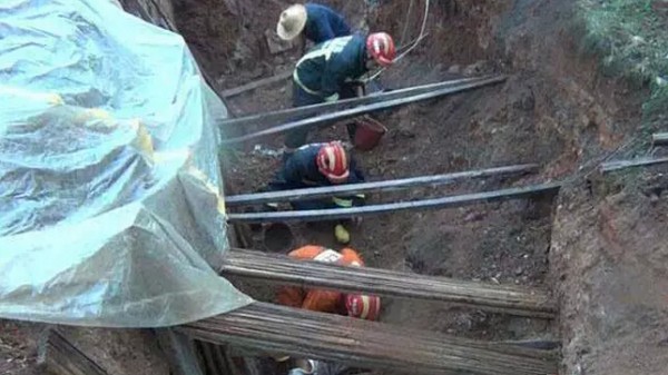 为了确保被埋工人不再发生意外,消防官兵放弃使用挖掘机械设施营救,采取了原始的手扒、锹铲施救。在安全绳索保护下,救援官兵下到坑中,利用工地建材在被困人员的周围搭建一个防护栏,以防止再次坍塌,开始救援。消防官兵从被困人员四周垂直向下挖掘。