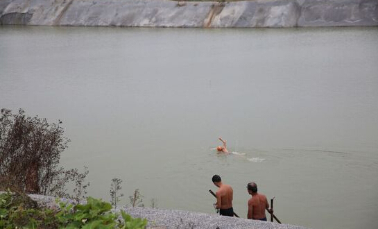整个地块,除了一栋略带欧式风格的售楼部外,其余土地现沦为市民的菜地,巨大的建筑基坑成为市民的露天游泳池,每天都有几十名游泳爱好者来此游泳。这是规划中的大型城市综合体项目——安庆“泰鑫威尼斯城”。