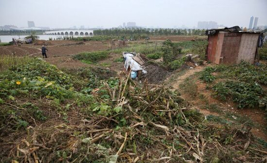 安庆黄金地块闲置5年成菜地 建筑基坑变泳池