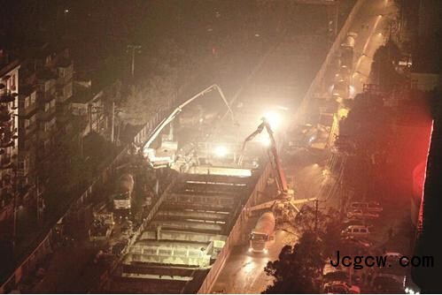 核心提示:图为:两台挖掘机正在加紧填土和水泥浆 昨晚6时许,武昌区和平大道与秦园路交会处的7号线一期工程越江隧道公路下匝道工程突发