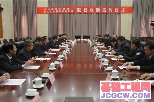 11月17日,山东省地质探矿机械厂在章丘龙原大厦隆重举行“山东省福矿安科技有限公司股权收购”签约仪式。省地矿局党委书记、局长王玉君和章丘市委书记江林出席,章丘市委常委、市长刘天东主持仪式。