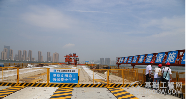 为此,项目用近12000吨钢管柱和工字钢等钢材在湖中搭设了长达1.8公里的钢栈桥施工便道,待工程完工后可以直接将其拔出,避免传统填土的方式对水质的污染。为避免桩基施工过程中泥浆对水质的污染,项目在桩基施工过程中设置深扎湖底的钢护筒,并将钢护筒用穿浆管相互连通,实现了泥浆循环。在墩柱使用过程中,在底部构筑了钢制围堰,施工中产生的任何废渣废水,围堰都会兜住,再集中后通过专用的泥浆车清运。同时利用彩条布、隔离带等将施工区域与湖区隔离,在垃圾意外掉落情况下立即进行打捞清理.。