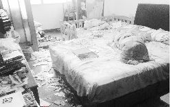 核心提示: 床上地面都散落着石灰墙皮。 6月1日早上7点,住在机场路一巷三合院小区9号楼1幢,50多岁的濮大妈在厨房为一家人做