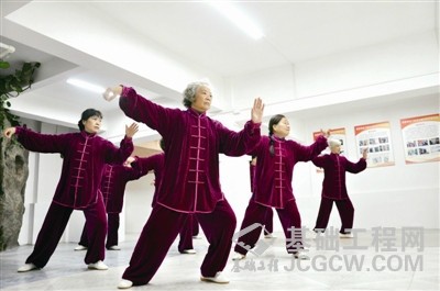 从前嘈杂的麻将室,“变身”成高大上的太极养生社。去年年底,皇亲苑14幢1单元地下室里入驻了“邦达太极社”。记者看到,120平方米的地下室经过装修后宽敞明亮,十几位老年太极队员正练习太极功夫,墙边还摆放着一排木制十八般兵器。要知道,去年,这里还是一个人声鼎沸的棋牌室。