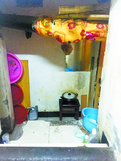 从小区9号楼进来,一条通道直通地下。记者在地下空间看到,地下室已经成了一个个格子间,过道最窄的地方,只能容一人通过。走在过道里,时而飘来一股潮味,地下室内的不少管道,也成了晾衣服的竿子。再走几步,还能闻见一股蒸米饭的味道,一个电磁炉搁在一间格子间门前,炉子上的小锅冒着热气。从一张平面图不难看出,地下空间一共有17间房,一个住在这里的小伙子说,这里的房租一个月大约七八百元,屋子非常小,仅能摆下一张床,地下室现在住得挺挤。