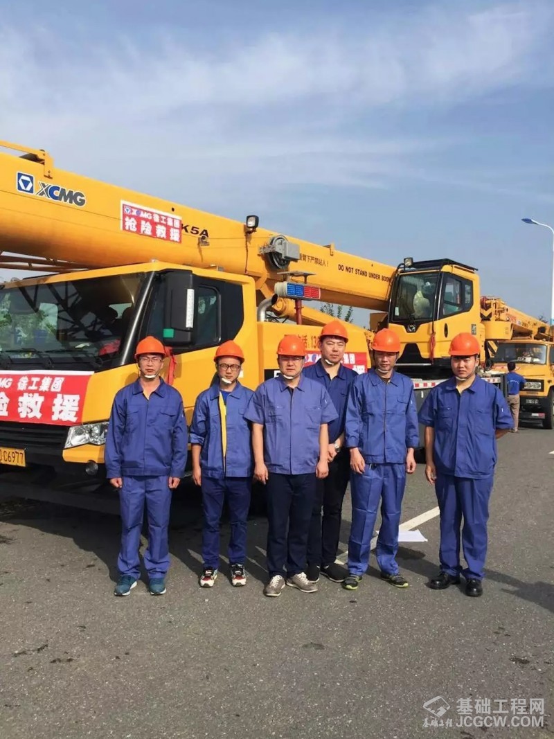 23日、24日,徐工分两批派出的由10名徐工员工和7台起重机、3台挖掘机、2辆服务车组成的救援队,在盐城阜宁县开发区、射阳县陈良镇等重灾区。