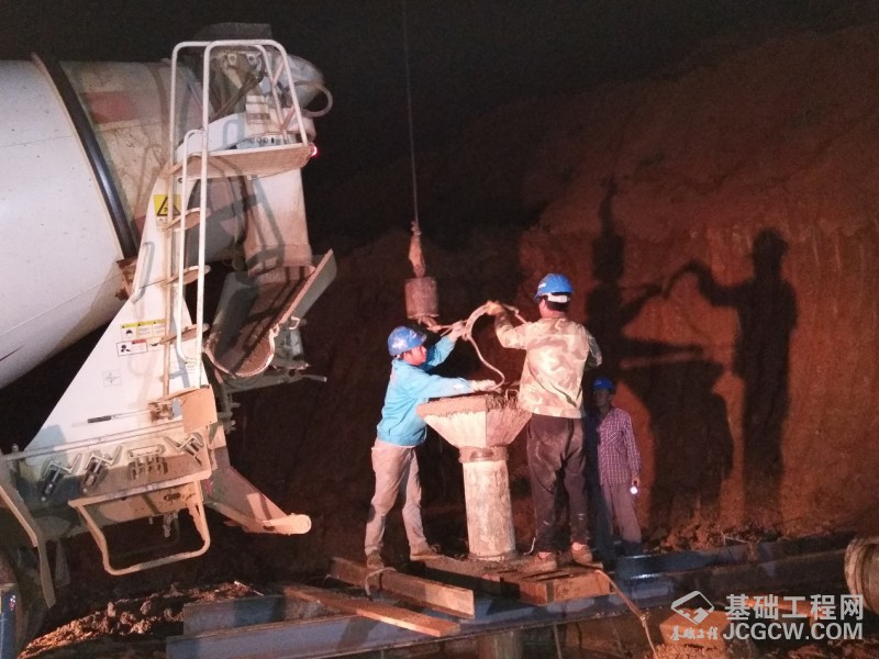 5月10日早上4:52分,中交三航局三公司云南华丽高速公路项目部首根灌注桩——松坪互通跨E匝道主线桥1-2桩基顺利浇注完成,单桩方量104立方米,揭开了施工序幕。
