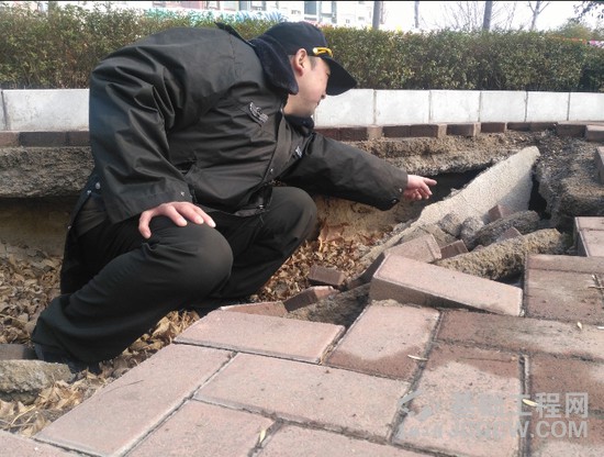 3月9日上午10时,中原区三官庙办事处巡防队员王建发等人经过此处小游园时,附近居民向他们求助,说游园内的路面出现沉降,地砖松动脱落,经常绊人,已经有半年的时间。队员们经过走访了解,得知该游园地面发生沉降的原因,是去年夏天的一场大雨过后出现的,可能是原来路面下的土质较虚,经过雨水渗透和浸泡后,泥土下沉,导致路面沉降。